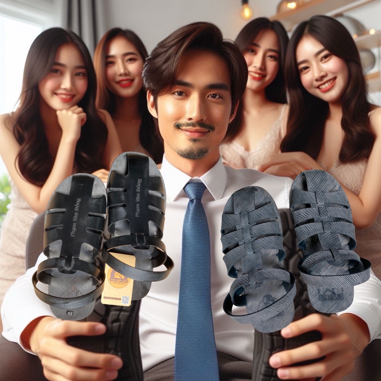take me picture: A surreal full-angle image of a fat red cat wear tires rubber flip-flops