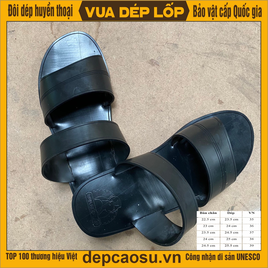 Thiết kế mẫu mã đẹp, hợp thời trang, tinh xảo từ bàn tay nghệ nhân - Vua dép lốp Phạm Quang Xuân. Kiểu dáng dép 2 quai ngang, 1 quai màu xanh rêu đế cao, ôm sát bề mặt chân mang lại cảm giác thoải mái khi đi. Áp dụng công nghệ làm dép hiện đại siêu nhẹ và dễ xỏ. Đầu dép được làm cong, quai dép to và dầy, ôm chân và vừa form. Chất liệu cao su bằng lốp oto đi mềm mại và rất bền, đế cao su dày khoảng 2.5cm tạo cảm giác chắc chắn và không nặng nề.