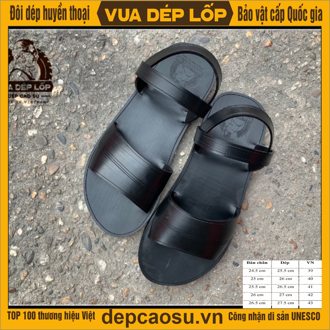 người nghệ nhân - Vua dép lốp Phạm Quang Xuân. Kiểu dáng 3 quai dép, quai trên bản to, 2 quai dưới có thể làm dép lê hoặc quai hậu. Dép được làm thủ công, có đường viền khắc chìm xung quanh, dưới đế được khoét chống trơn trượt, có rãnh thoát nước. Đầu dép được làm cong, quai dép to và dầy, ôm chân và vừa form. Chất liệu cao su lốp oto đi mềm mại và rất bền, đế cao su dày khoảng 1cm tạo cảm giác chắc chắn và không nặng nề.