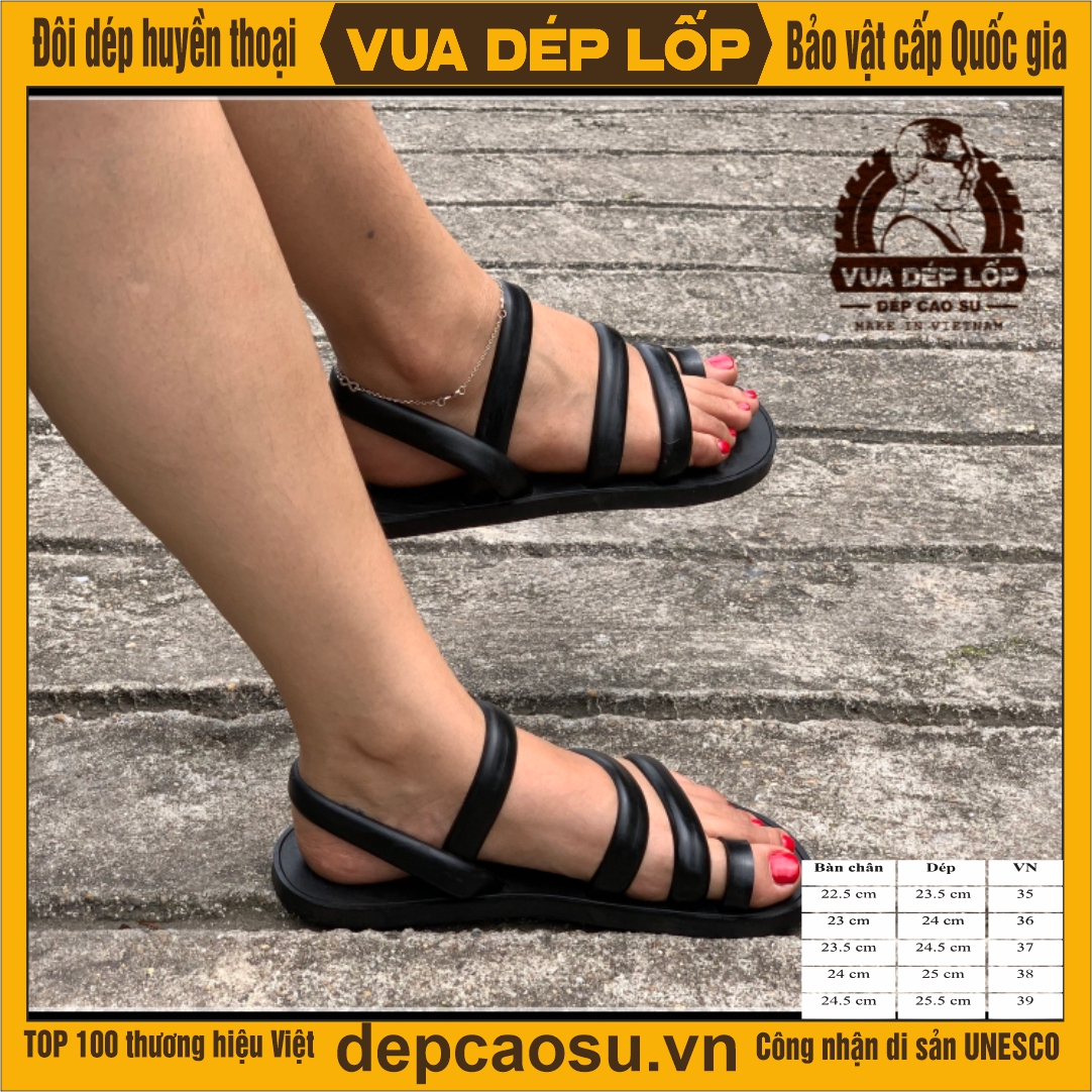 Thiết kế mẫu mã đẹp, hợp thời trang, tinh xảo từ bàn tay nghệ nhân - Vua dép lốp Phạm Quang Xuân. Kiểu dáng dép gồm 5 quai: 1 quai xỏ ngón ở phía trên đầu dép, ôm sát bề mặt chân mang lại cảm giác thoải mái khi đi. Dép được làm thủ công, có đường viền khắc chìm xung quanh, dưới đế được khoét chống trơn trượt, có rãnh thoát nước. Đầu dép được làm cong, quai dép to và dầy, ôm chân và vừa form. Chất liệu cao su lốp oto đi mềm mại và rất bền, đế cao su dày khoảng 1cm tạo cảm giác chắc chắn và không nặng nề.