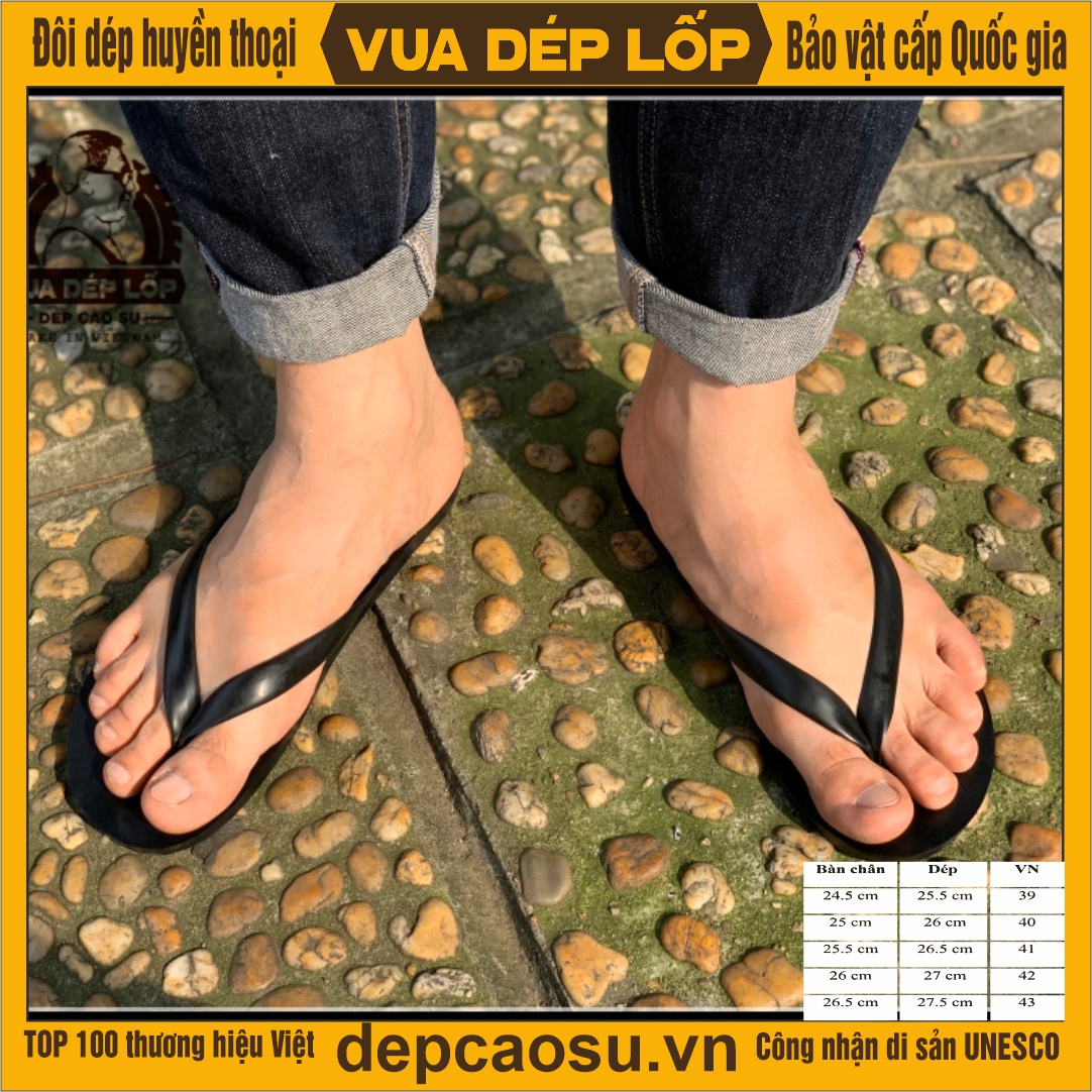 người nghệ nhân - Vua dép lốp Phạm Quang Xuân. Kiểu dáng 2 quai dép kẹp xen kẽ, ôm sát bề mặt chân mang lại cảm giác thoải mái khi đi. Dép được làm thủ công, có đường viền khắc chìm xung quanh, dưới đế được khoét chống trơn trượt, có rãnh thoát nước. Đầu dép được làm cong, quai dép to và dầy, ôm chân và vừa form. Chất liệu cao su lốp oto đi mềm mại và rất bền, đế cao su dày khoảng 1cm tạo cảm giác chắc chắn và không nặng nề.