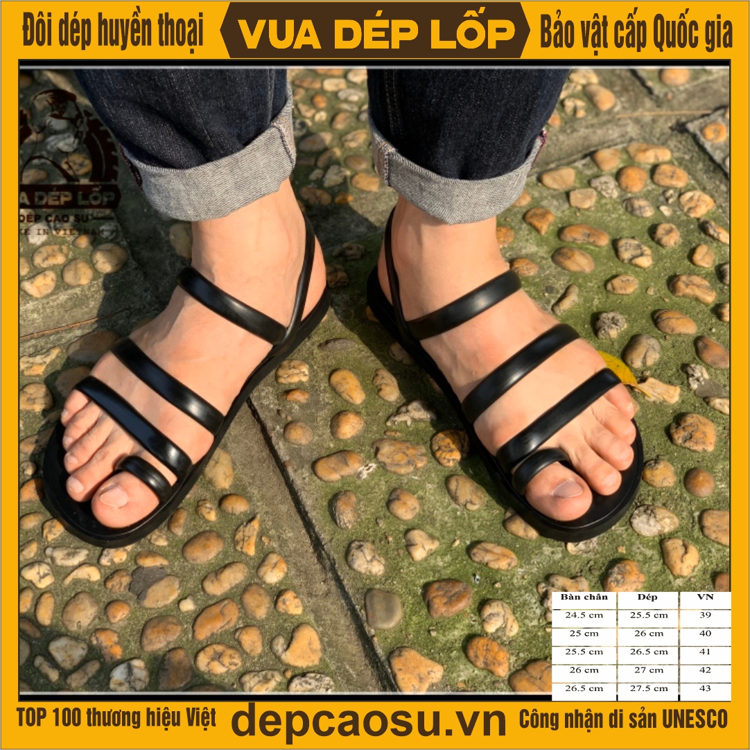 Thiết kế mẫu mã đẹp, hợp thời trang, tinh xảo từ bàn tay nghệ nhân - Vua dép lốp Phạm Quang Xuân. Kiểu dáng dép gồm 5 quai: 1 quai xỏ ngón ở phía trên đầu dép, ôm sát bề mặt chân mang lại cảm giác thoải mái khi đi. Dép được làm thủ công, có đường viền khắc chìm xung quanh, dưới đế được khoét chống trơn trượt, có rãnh thoát nước. Đầu dép được làm cong, quai dép to và dầy, ôm chân và vừa form. Chất liệu cao su lốp oto đi mềm mại và rất bền, đế cao su dày khoảng 1cm tạo cảm giác chắc chắn và không nặng nề.