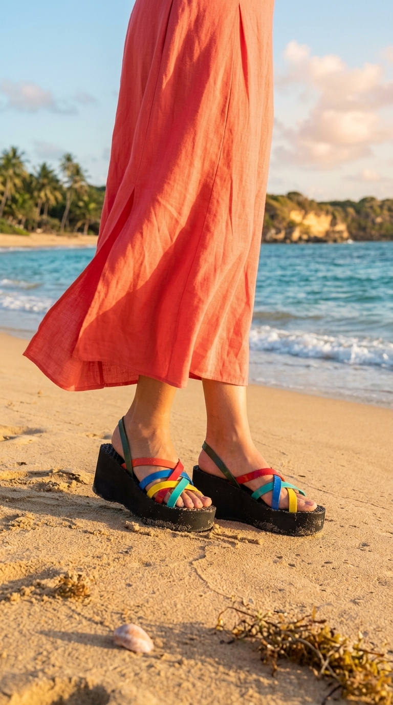 Dép thời trang đế cao trống trơn trượt và màu sắc thời trang, mix cùng váy maxi, áo dài