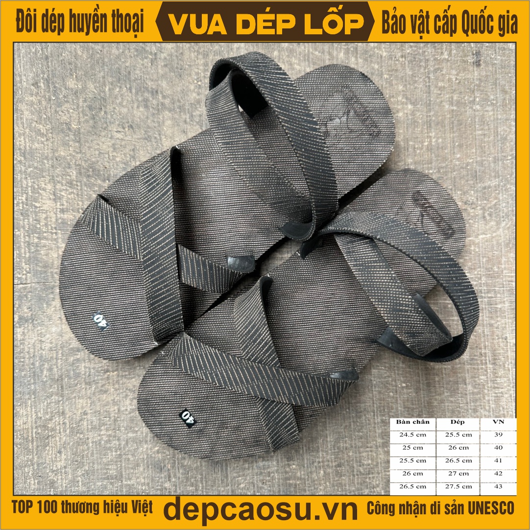 Tiền thân là đôi dép cao su Hồ Chí Minh, được gìn giữ qua đôi bàn tay nghệ nhân Phạm Quang Xuân. Dép cao su thương hiệu Vua Dép Lốp là sản phẩm dép cao su chất lượng cao của người Việt. Dép được làm hoàn toàn thủ công với thiết kế cách tân hợp thời trang. Dép được làm từ lốp ôtô, máy bay. Cao su nguyên bản, nguyên khối, độ bền cao. Đế cao su mềm. Quai cao su dày và ôm chân. Thuận tiện trong rất nhiều điều kiện thời tiết khắc nghiệt như mưa gió hay nắng nóng. Phong cách thời trang vừa bụi bặm vừa rất trẻ trung.